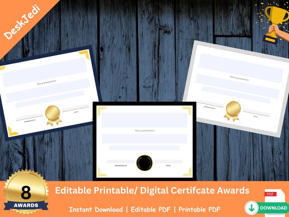 8 Editable Printable Digital Certificates Awards | Minimalist Design, Office Printable Award, Scholarship Award, Graduation School